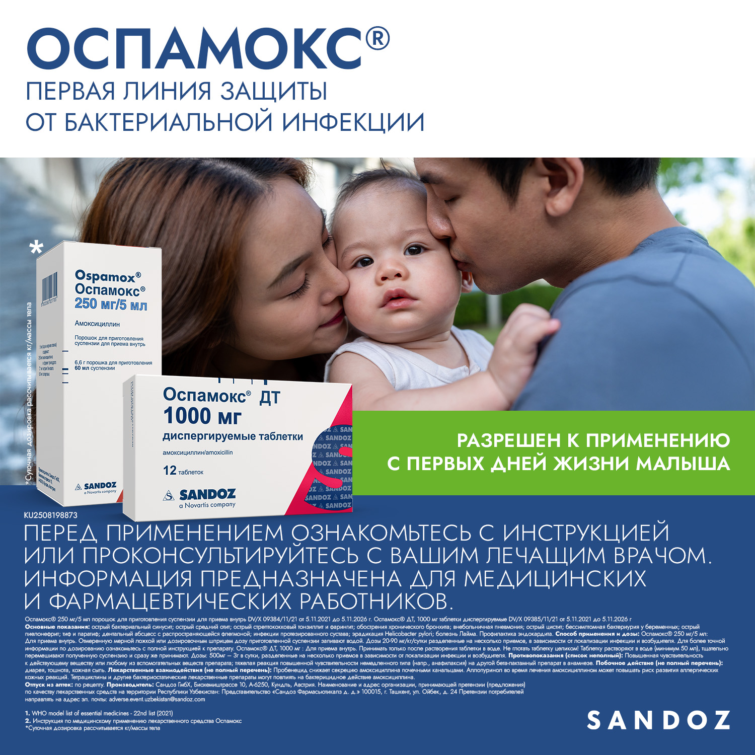 Олти ойликдан кичик болаларда амоксициллиннинг педиатрик суспензияси тавсия этилади.