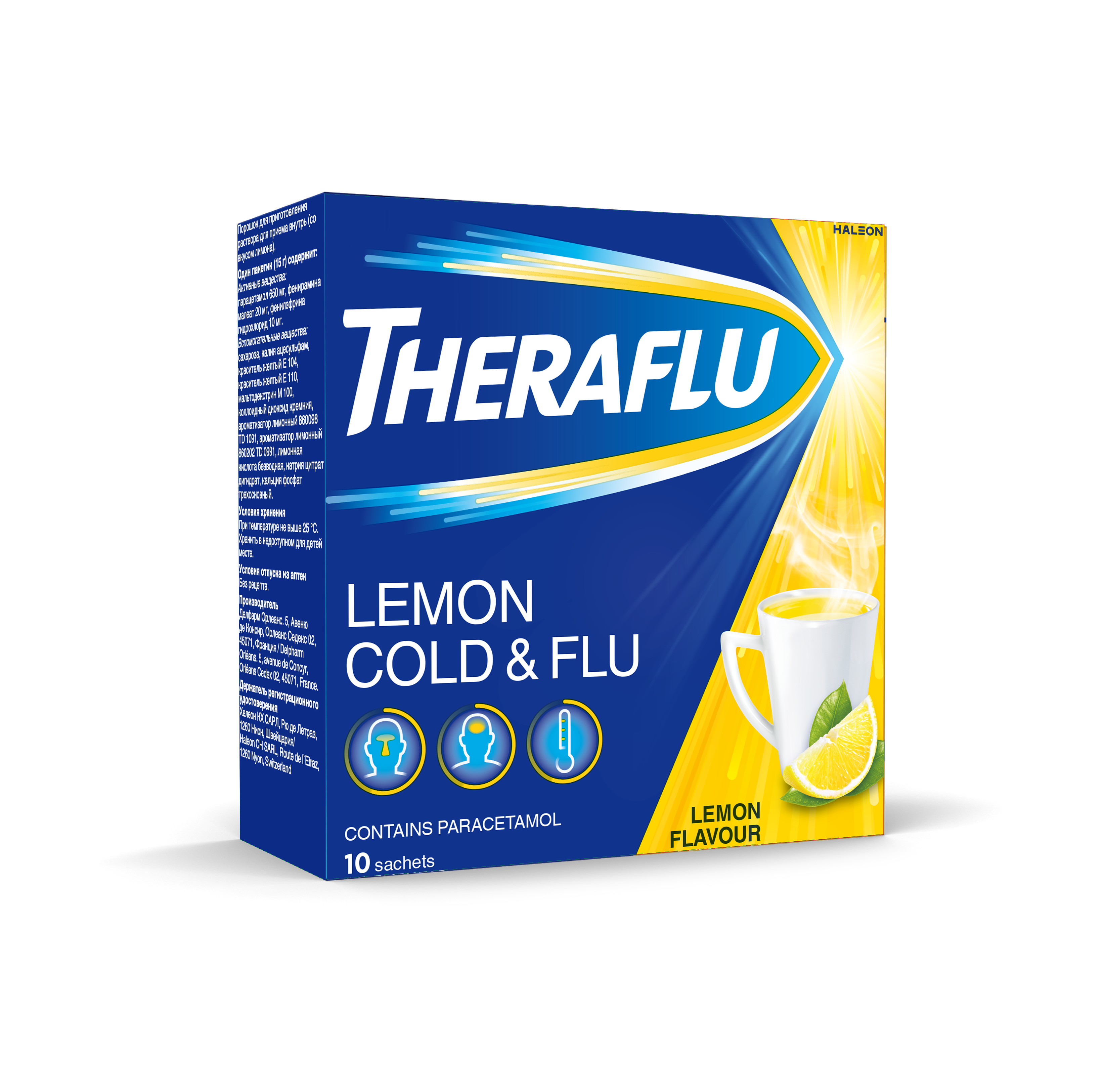 фаол моддалар: 325 мг парацетамол, 20 мг фенирамин малеати, 10 мг фенилэфрин гидрохлориди, 50 мг аскорбин кислотаси;